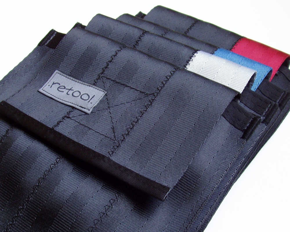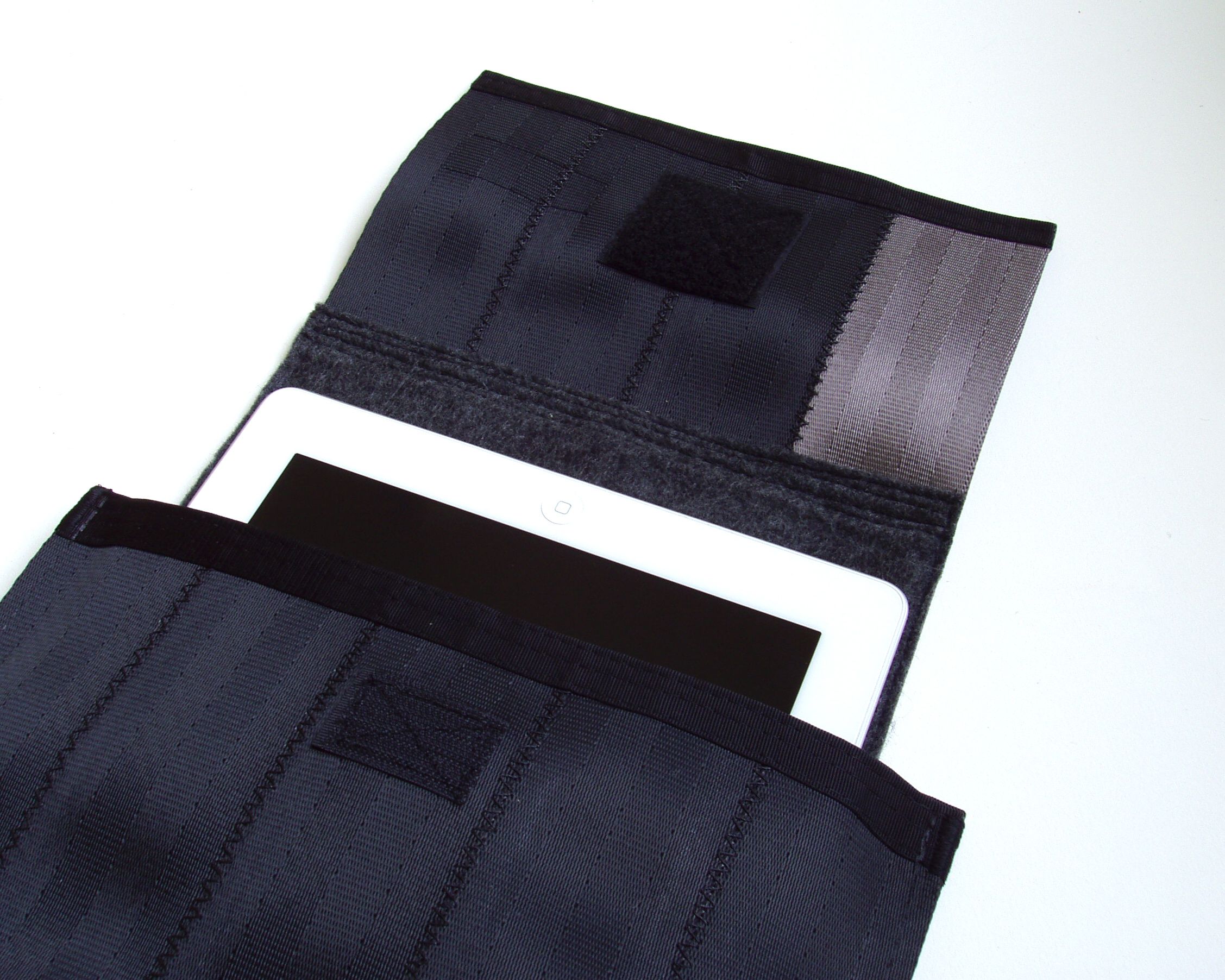 Our C series comes in a variety of sizes to fit devices ranging from an iPad mini (or similarly sized item) to a 13″ MacBook. They are made of seatbelt webbing and are lined with eco-fi felt.