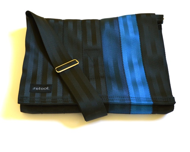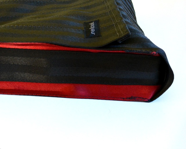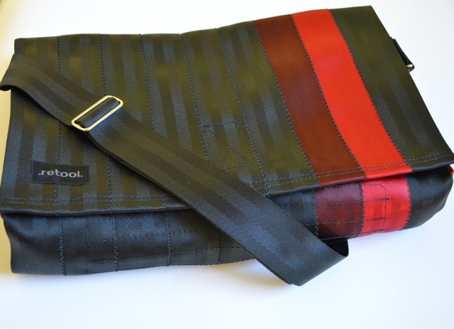 Will likes a big bag. He uses his bag to haul around large amounts of library books, and random stuff he needs throughout the day. I made Will an M-9 (nine strips wide) in Fire aka black with oxblood and cranberry red stripes. It’s actually a little too big of a bag for the current .retool. sewing machines – there was much rolling and folding of the excess material. There may have also been some minor cursing at times.