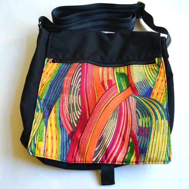 Glenn wanted a messenger bag around 12″ x 12″ x 4″ with two 5-6″ interior slip pockets and one exterior zippered pocket.
