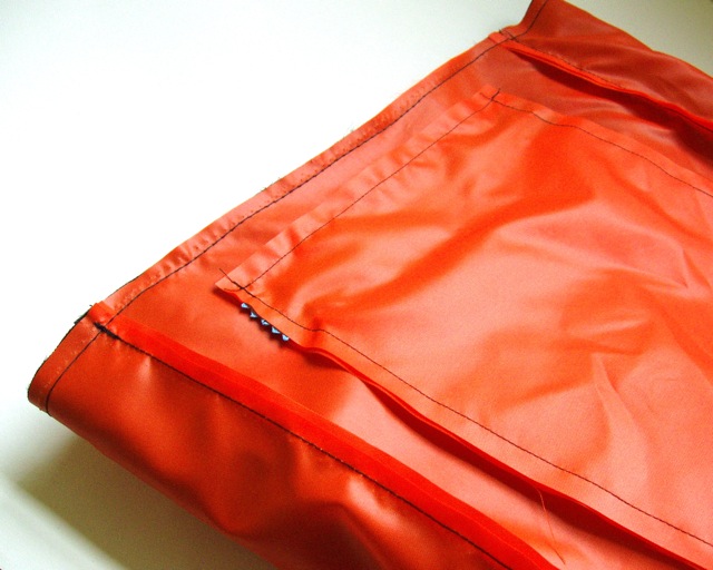 Time to make the lining! I used international orange (aerospace) 200D nylon. It’s bright, but not too bright.
